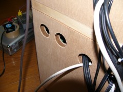 写真ではファンが付いてしまっているので見えないが、パネルは合板が2重になっている。穴2個
